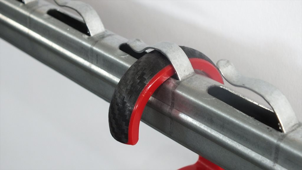 Grazie a questo nuovo sistema tutti gli appendiabiti possono essere appesi e trasportati con la massima sicurezza.