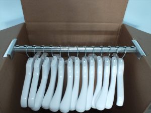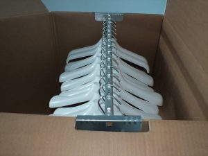 Il sistema di bloccaggio degli appendini (Brevettato) fa si che gli abiti siano trasportati in estrema sicurezza ed รจ impossibile che cadino a terra.