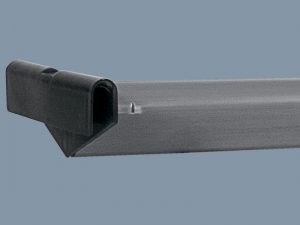 Supporto in plastica con tubo liscio e graffatura ai lati. Plastica resistente agli urti e alle temperature estreme.